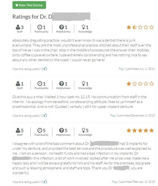 The majority of practices have a very high satisfaction rate amongst patients; however most will also have a few that have a predisposition to seek out the negative things in life and focus on those. These days, those people are likely to find their way to websites and review directories leaving negative feedback there.